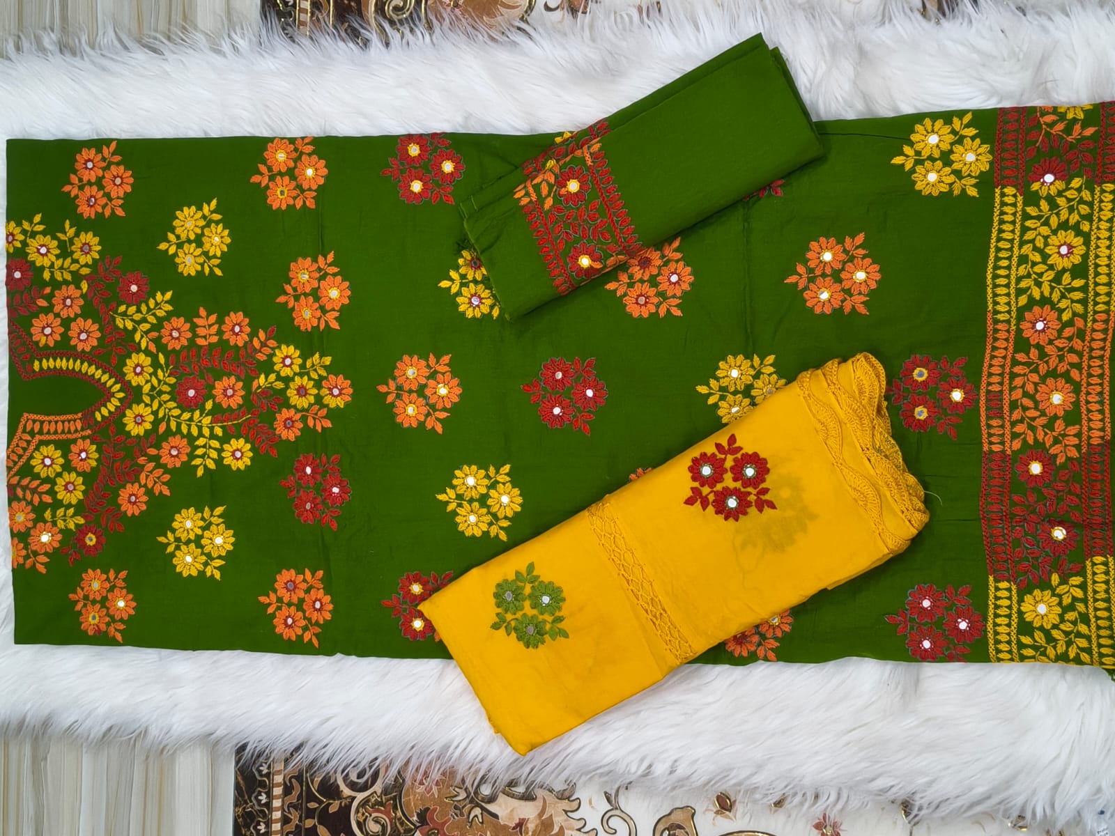 হাতের কাজের থ্রি পিস (কুশি কাটা)